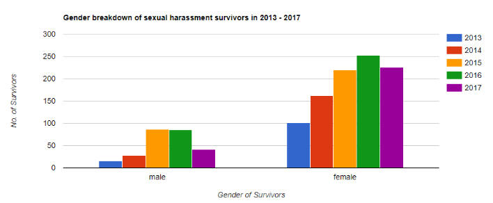 Chart 1: Gender breakdown of sexual harassment survivors in 2013 - 2017
