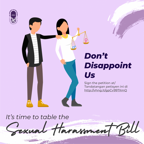Malaysia has no stand alone laws on the sexual harassment act and AWAM has been fighting for the parliament to pass the bill on sexual harassment. Referring to AWAM (2020), AWAM has been working with many NGOs through the coalition Joint Action Group for Gender Equality (JAG) to draft and propose a Sexual Harassment Bill for over 20 years.